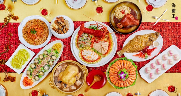 海霸王餐廳推出最澎湃又大器的「虎虎生風」年菜套組,共有十道佳餚,包含富貴龍蝦三拼(龍蝦鴛鴦拼)、招財進寶九孔鮑(和風蟹肉九孔鮑)、以香菇等精選食材,再以魚皮等天然膠質蒸煮的「御品佛跳牆」、珠圓玉潤慶團圓(紅燒圓蹄)、祥和瑞氣蒸鮮蝦(圓籠蒸鮮蝦)、步步高升香米糕(臘味櫻花蝦米糕)、年年有餘好運來(汶火酥香鮮魚)、使用近百隻雞一起熬煮的如意鳳貝砂鍋雞(鳳貝砂鍋雞),另外還有「團圓豆沙包」和「甜蜜情人果」兩道甜點呢!