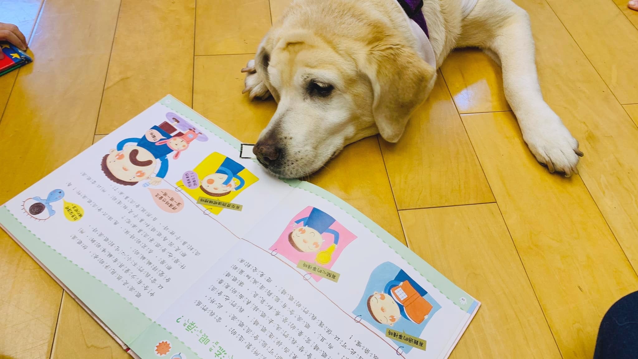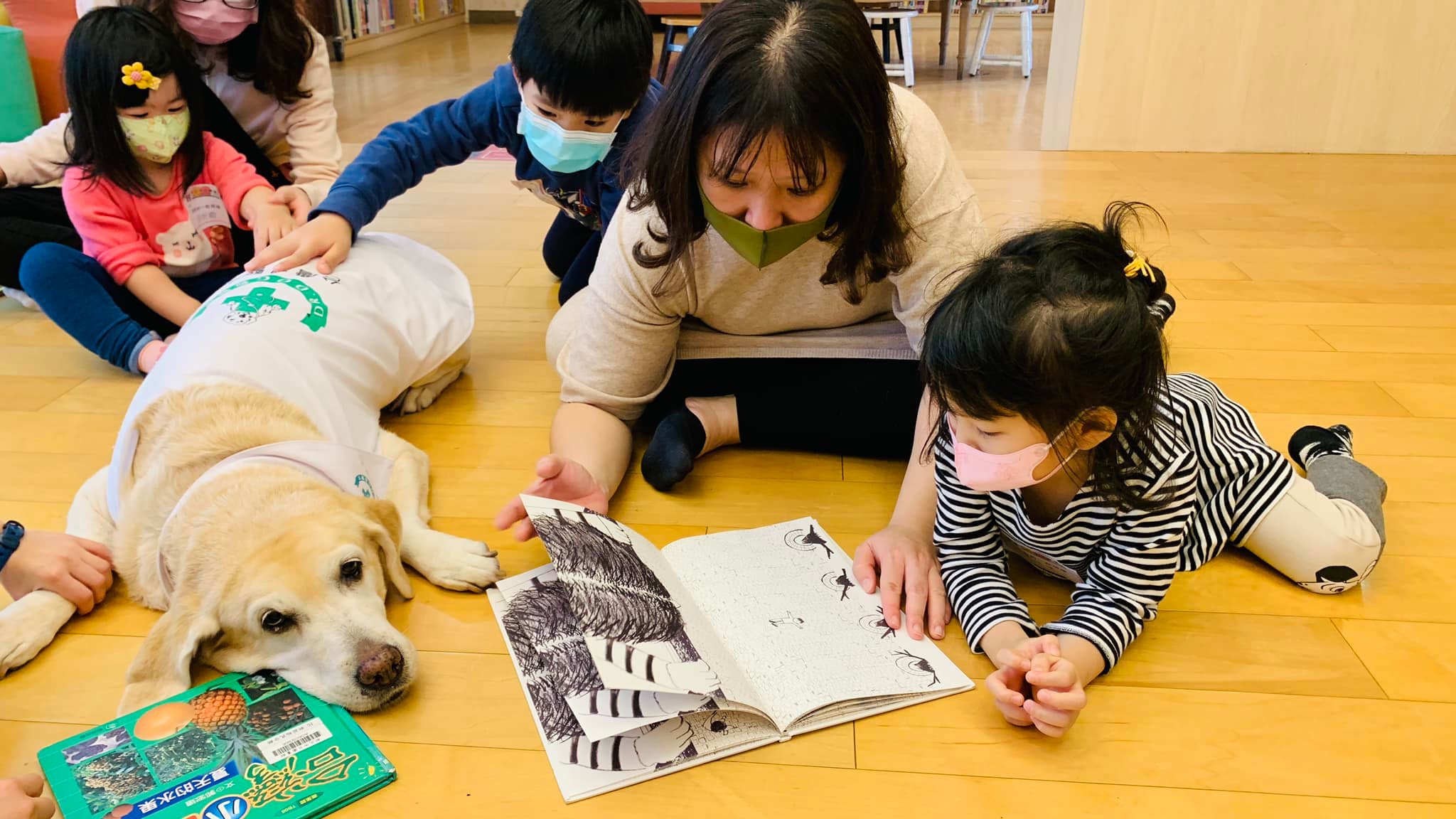 很多小朋友其實非常喜歡寵物,但礙於家中環境或父母要求,無法擁有自己的狗狗貓貓,所以裕民分館有「駐點伴讀服務」,採免費預約制,只要提前預約就可以讓孩子跟狗狗近距離接觸。館方表示平時很害羞的孩子,會一本接著一本地唸書給旁邊的狗狗聽;不愛念書的孩子也會因為有狗狗的陪伴主動看書,讓家長們都相當意外呢~