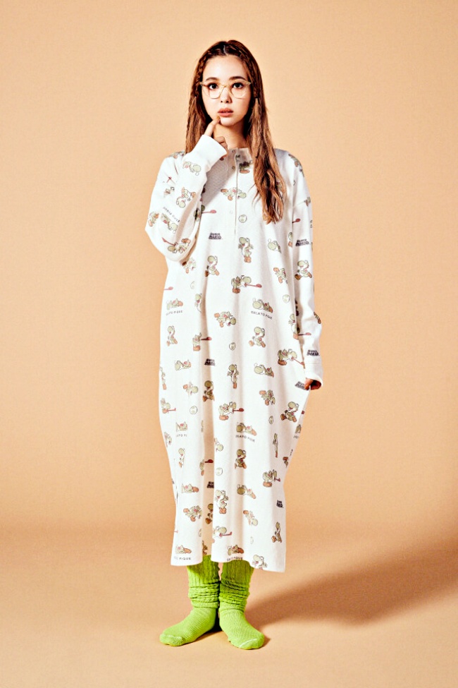 「登登登、登冷登」看到這幾套是不是秒響起這經典BGM?超級瑪利歐兄弟聯名居家系列除了有百搭T恤,還有瑪利歐神隊友坐騎烏龜「耀西」(不是恐龍)為設計主角的成套睡衣、居家連身裙,耀西睡到趴在地上、開心跑步、俏皮吐舌等生動模樣滿滿印上。