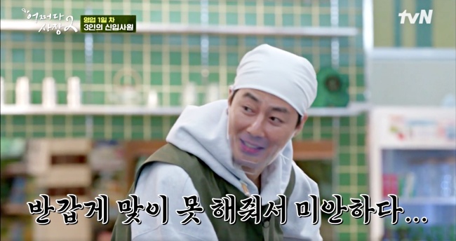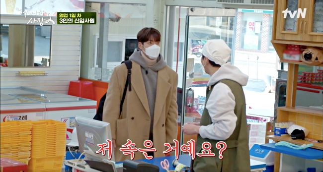 三人變身「限定打工仔」準時抵達賣場上工,卻看到佔地超廣的商店、外加忙得像戰爭一樣的車太鉉、趙寅成兩位老闆,全體秒傻眼(笑),趙寅成還假裝沒看見繼續說著:「這裡很小吧?」穿著長大衣、揹著背包出鏡的金宇彬一臉矇詢問:「我是不是被騙了?」似乎衝擊太大一邊走還一邊傻眼追問:「這些工作我們都要做嗎?」