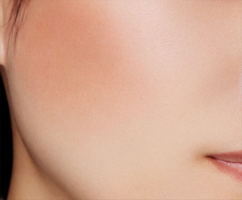 「09可憐咲」色彩帶有微微的粉紅色珠光,賦予輕柔的血色感,透出淡淡紅感膚色的米色調。「10奧響」霧光的色澤,雙頰由內而外透出自然血色的紅潤感,具深邃的莓果紅色調。