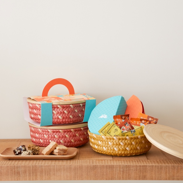 HOLA於兔年推出「迎春織喜新年禮盒」,以傳統圓形糖果盒靈感進行設計,圓形糖果盒象徵圓滿、家庭團圓的意象,盒子選用荷蘭手工編織籃Handed By特有的混色編織,金、紅兩色象徵發財及平安的寓意,運用編織籃直接加上兔子封套更有年味,禮盒打開,以兔子分割年味零嘴,內味選用台東青澤的千金酥、南棗核桃糕等年味零嘴,希望大家一起「呷甜甜,過好年」。迎春織喜新年禮盒888元,優惠價799元,HOLA農曆新年檔期2022年12月28日至2023年1月20日再享全館單筆消費滿2,500元送250元