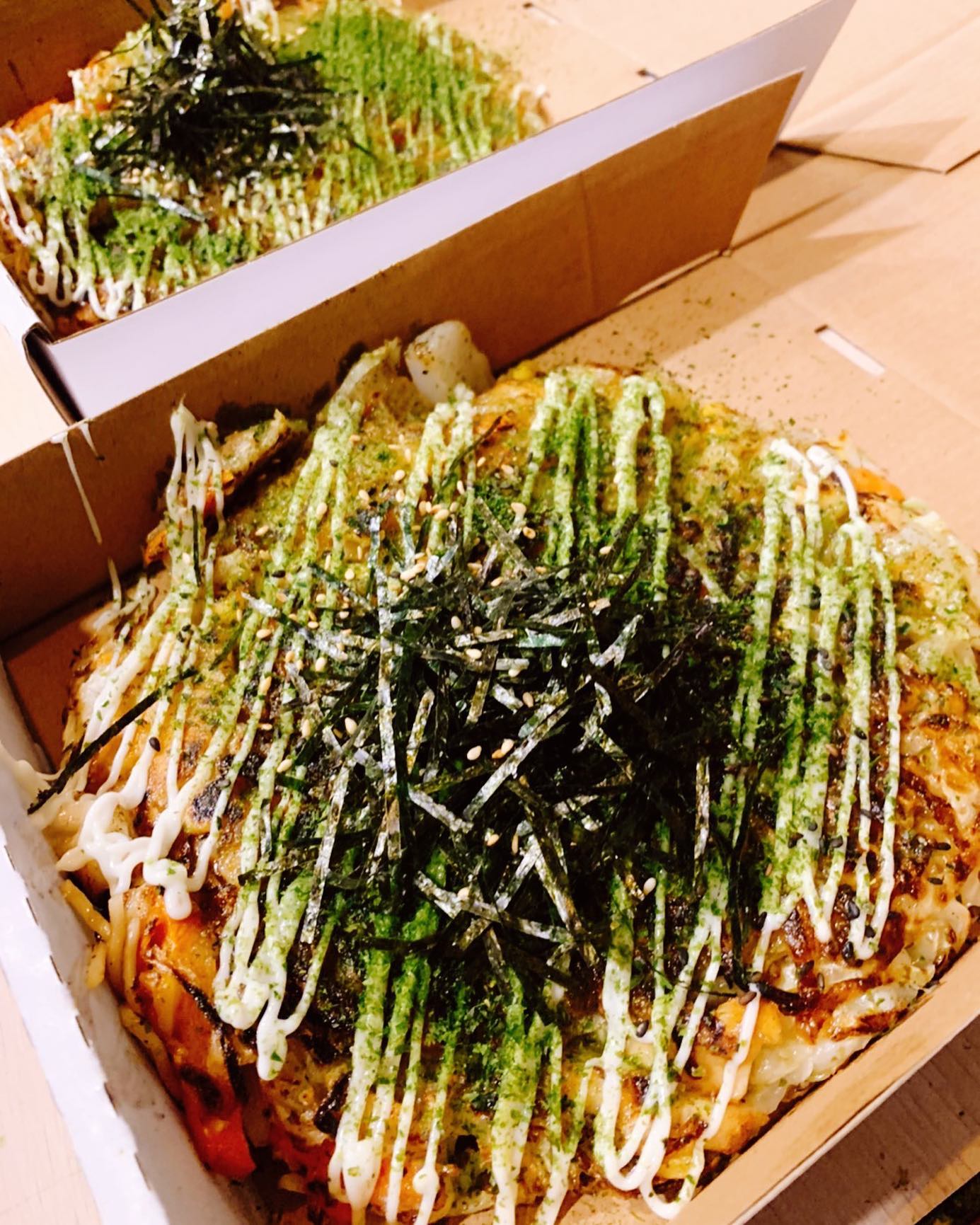 店裡的招牌「日式大阪燒」不只吸引饕客慕名而來,吃過的客人也都讚譽有加。滿滿的高麗菜和五種配料,搭上店家特製的麵糊香煎,底層更鋪上了麵條跟起司,實在太驚喜了!而大阪燒也有奶素、純素兩種可以選擇喔~