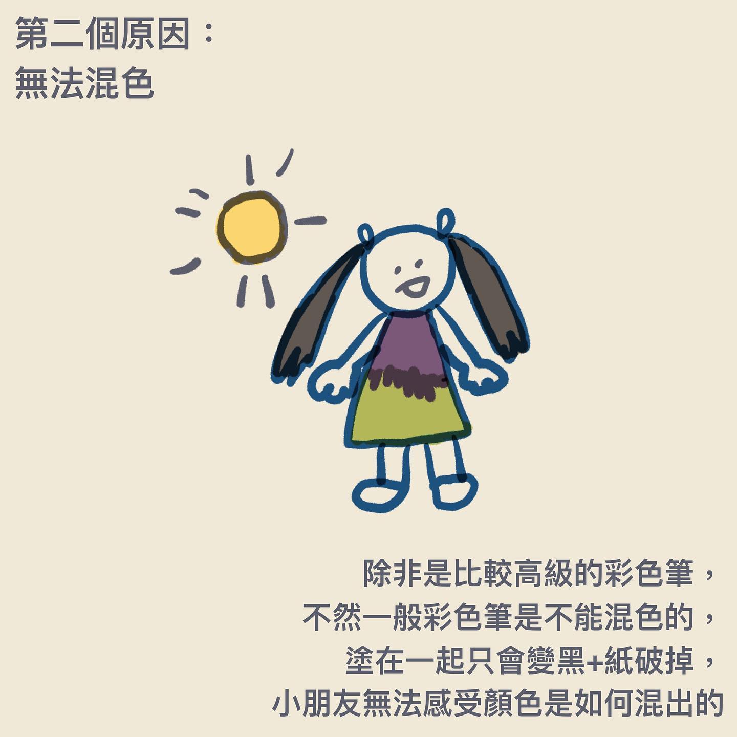 幼教師不鼓勵用彩色筆的原因 2.無法混色