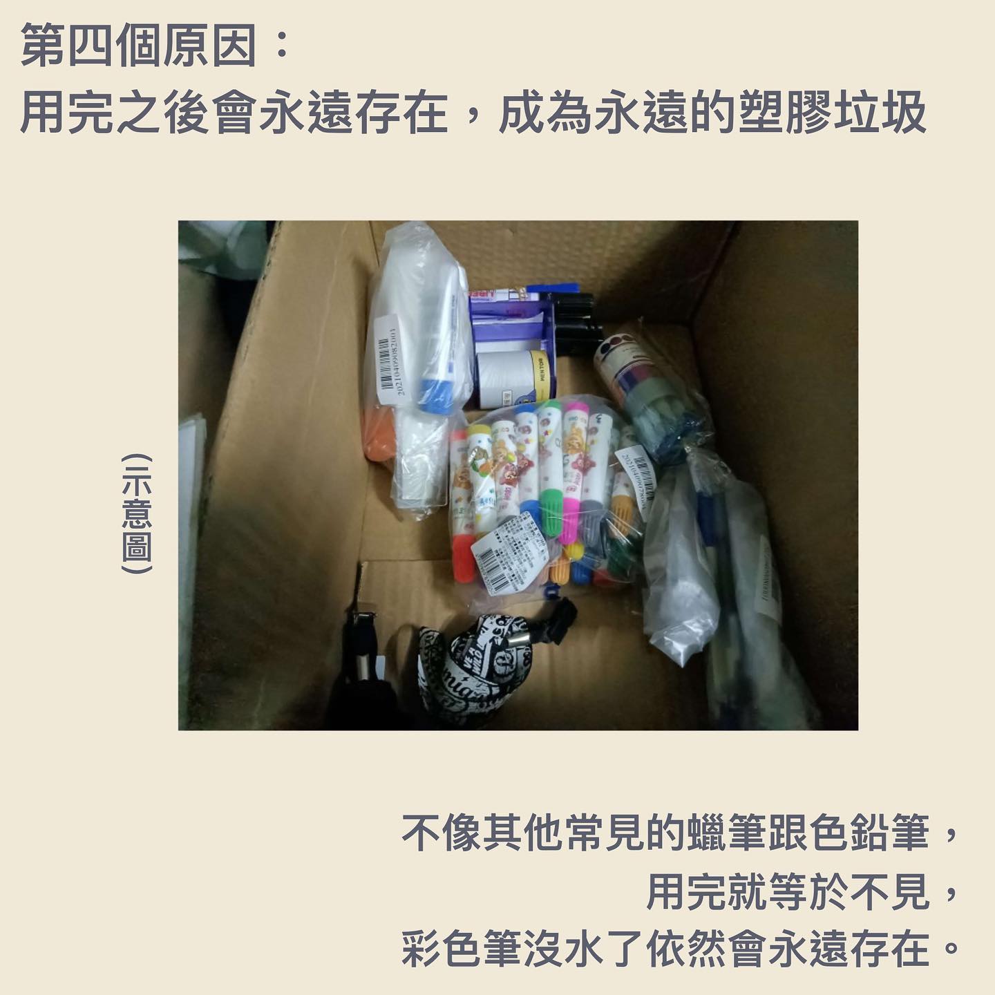 幼教師不鼓勵用彩色筆的原因 4.產生塑膠垃圾