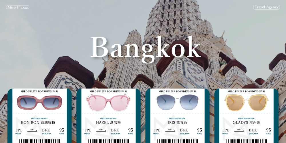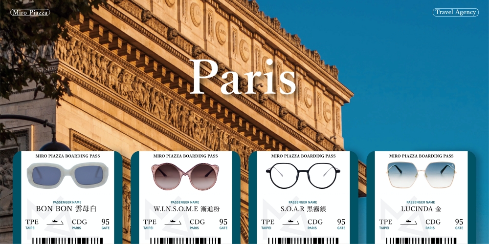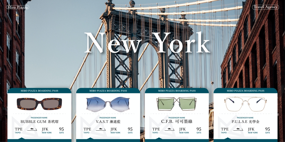飛向夢想中的巴黎香榭麗舍大道、曼谷水上市場、札幌的遍地白雪,還有紐約布魯克林大橋,現在就讓 Miro Piazza 帶你一起漫遊世界,由 4 個不同城市出發感受不同鏡款的風格造型。