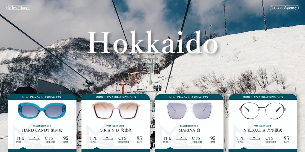 等不急衝北海道來場冬季戀歌了嗎!?銀白色的雪覆蓋著札幌市區,以 N.E.B.U.L.A 光學鐵灰擋住紛飛的粉雪,搭配駝色大衣、長靴踩上叮叮咚咚駛來的路面電車。滑雪的日子,則用大鏡面的 MARINA 白或 G.R.A.N.D 玫瑰金阻隔雪地反射的強烈紫外線,加上耳罩、雪衣就能自在的享受在雪地中滑行的暢快。還有不能錯過的函館限定小丑漢堡,戴上同樣色彩鮮明的 HARD CANDY 果凍藍,配上高領針織衫與燈芯絨高腰寬褲,與熱量同行。