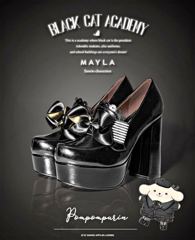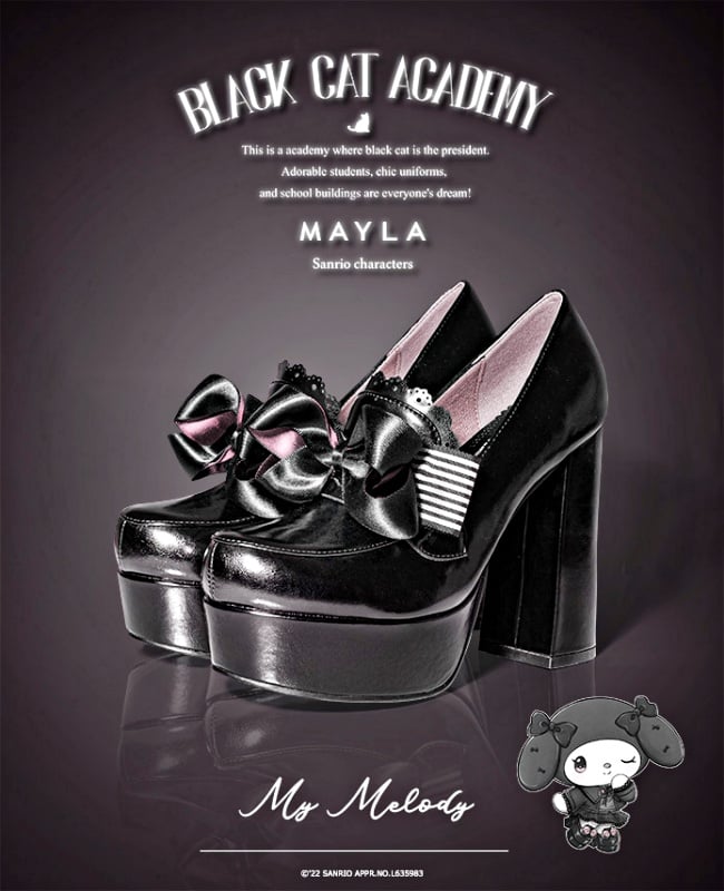 大家熟悉的Hello Kitty擁有奶油白膚色、頭上戴著紅色蝴蝶結髮飾,現在卻換上「全黑蕾絲洋裝+華麗高跟鞋」,招牌蝴蝶結也變成黑色格紋!?其他5角色也穿著同款神秘校服現身,原來這是為了日本鞋履品牌mayla classic打造的限定「Black Cat Academy」主題,最新二度聯手三麗鷗,這次不走夢幻路線,全員登上超高高跟鞋霸氣一路走到黑(笑)~(三麗鷗聯名「Kitty+美樂蒂+大耳狗高跟鞋」!)