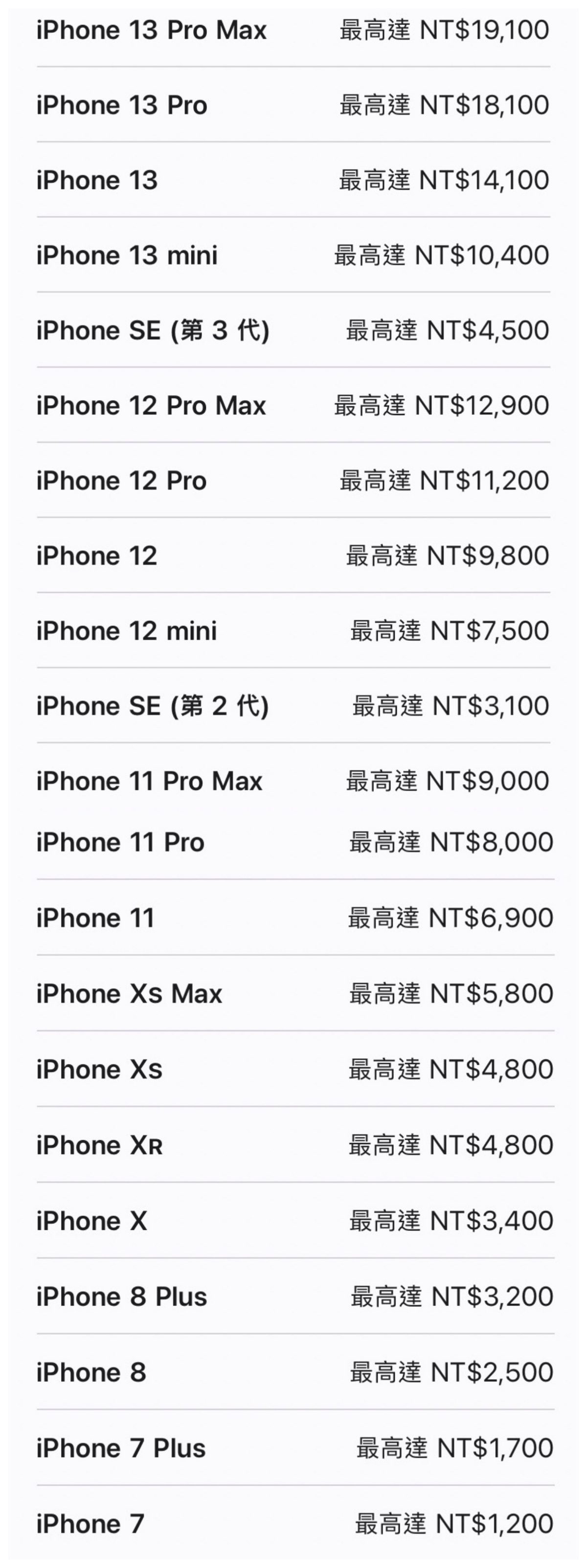 Apple iPhone 系列官方 Trade-In 回收價(四月最新版)
