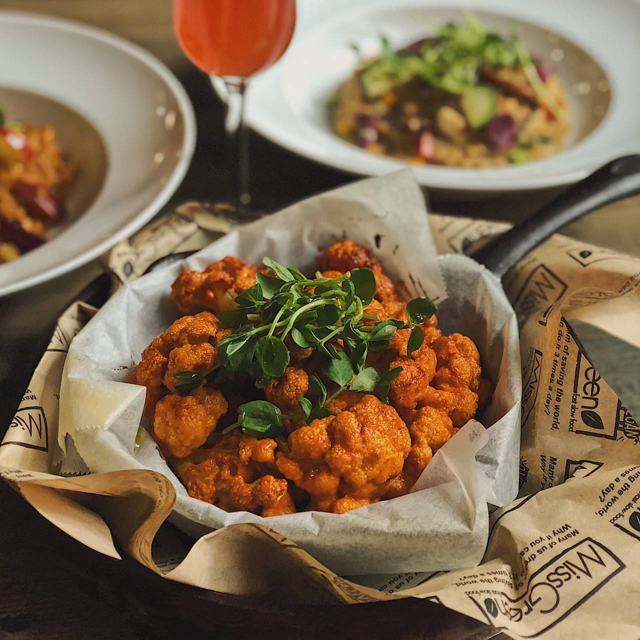 剛上桌還誤以為是來到韓式炸雞店(笑),MissGreen特別自己醃漬了蔬食版的紐奧良醬,打成泥後裹在一朵朵白花椰菜上拿去烤,不同於其他店多數用炸的,更少了入口的油膩感,忍不住會想一口接一口掃光,完全是一份低負擔、無麩質友善的vegan料理呢!