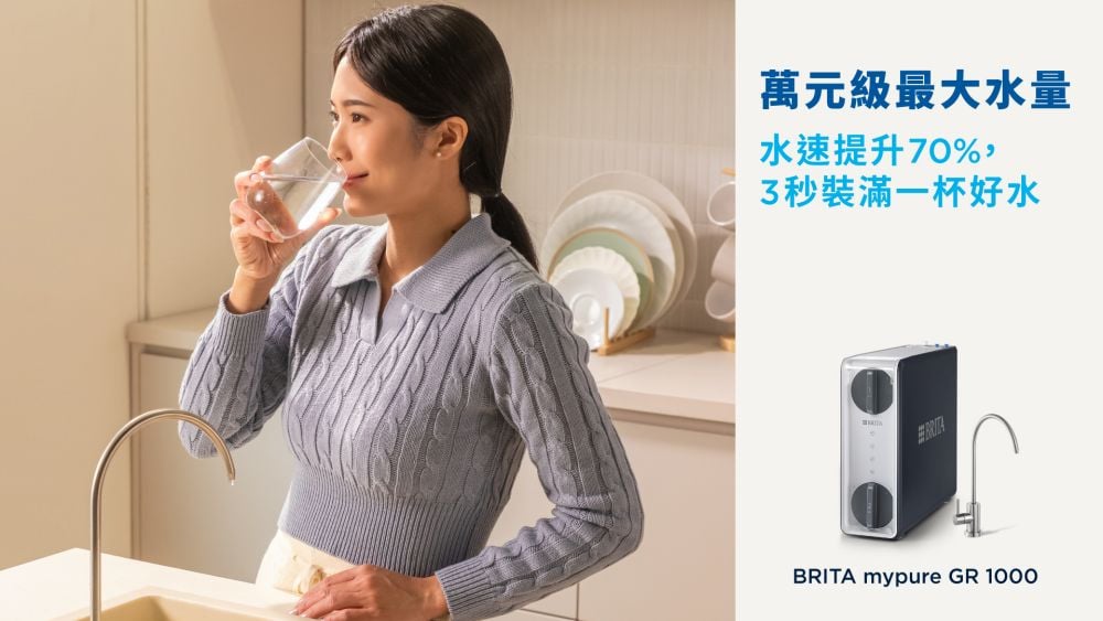 看準消費者對「效率」的渴望,全球淨水領導品牌 BRITA 正式推出全新旗艦高階款mypure GR 1000 大水量 RO直輸 淨水系統。搭載 1000G 超大造水量規格,將造水速度大幅提升 70%(※註1) ,每分鐘出水量高達 2.6 公升(2.6L/min)。這意味著裝滿一杯日常飲用水僅需短短 3 秒鐘,無論是早晨急需一杯溫水,還是烹飪煮湯時接滿整鍋純水,都能提供「隨開即飲、無需等待」的旗艦級暢快體驗。