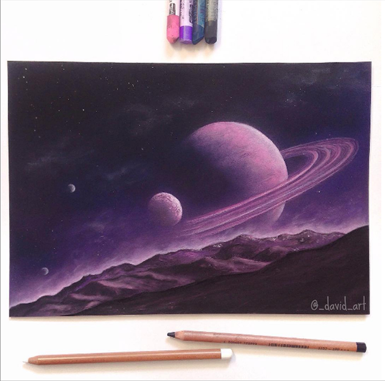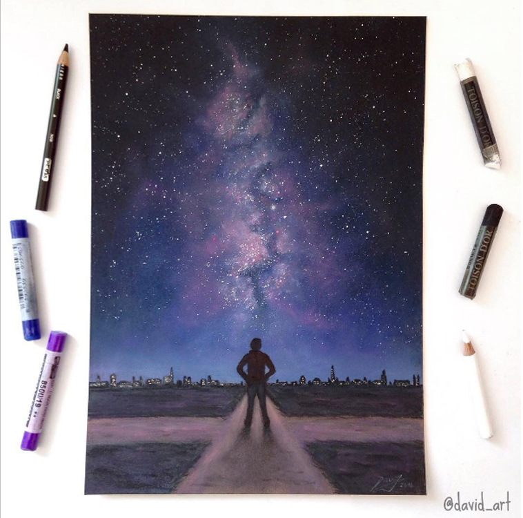 David Ambarzumjan的繪畫特色就是有滿滿的宇宙及星空元素,結合一些人物、靜物以及動物,讓畫面看起來既奇幻又有童趣感。不過David也不是天生就這麼會畫,翻翻他早期的作品,其實會發現跟現在相差甚遠,因此我們也間接得知他非常努力不懈地在精進自己。