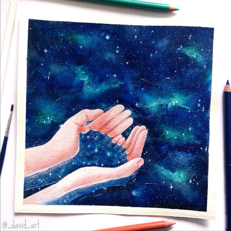 瞬間墜入充滿未知感的宇宙 正妹插畫家用水彩畫出一片片奇幻星空