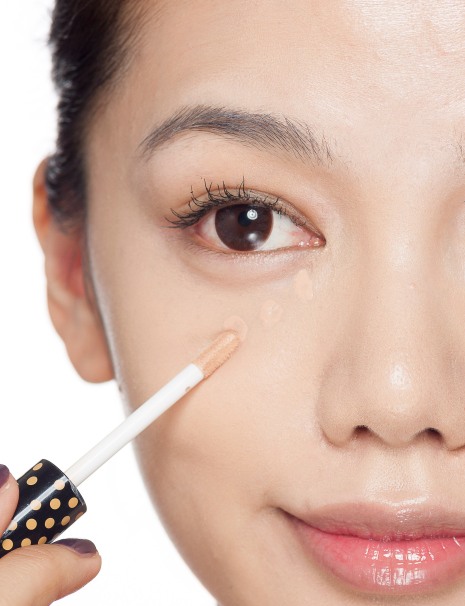 特別針對黑眼圈來修飾遮瑕,請選用眼部遮瑕品,利用刷子或指腹來輕點上妝,保持眼部底妝的薄透感。