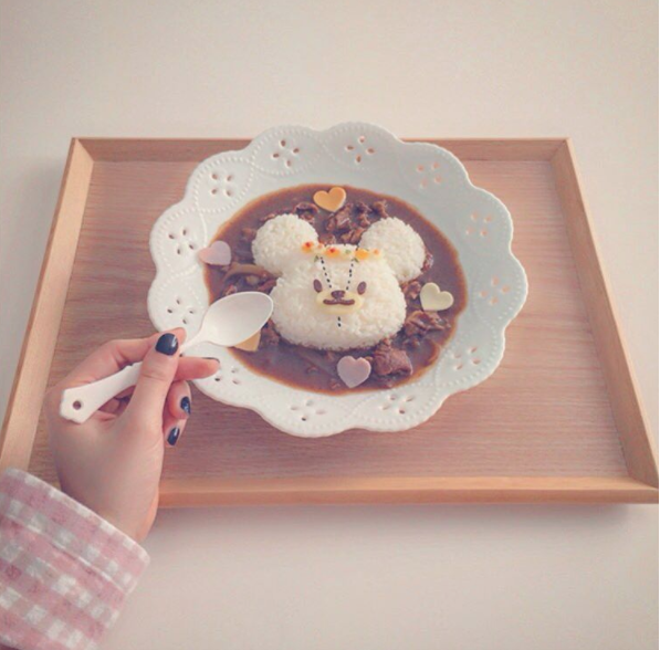 一大早竟然有時間做牛肉燉飯?而且燉牛肉就燉牛肉,飯還要做成「小熊學校」插畫人物的模樣,真是太賢慧了啊......