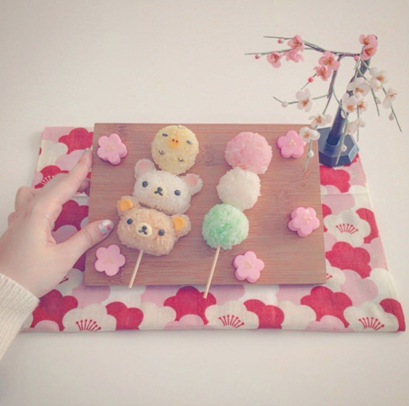 為了「女兒節」(ひな祭り)而做的懶懶熊家族擬丸子飯糰。