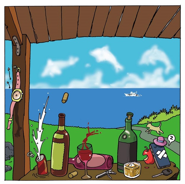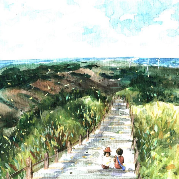 敖幼祥畫出他花蓮的鹽寮生活,嘩啦~嘩啦~的浪濤聲,把全身細胞染成一片海洋,日子舒服到變成一條懶得翻身的鹹魚!XD