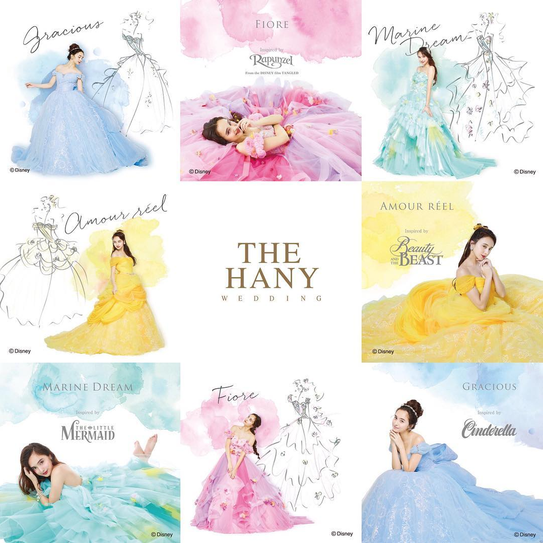 THE HANY是非常新興的日本婚紗品牌,以繽紛多彩,既可愛又不失優雅的婚紗、和服聞名~和迪士尼合作推出的公主婚紗也在推特上造成一陣轟動!這系列婚紗一共有4款,分別是仙杜瑞拉、小美人魚、貝兒跟樂珮~妞編輯覺得比起KURAUDIA走的優雅女人風,THE HANY的似乎更少女、夢幻♡