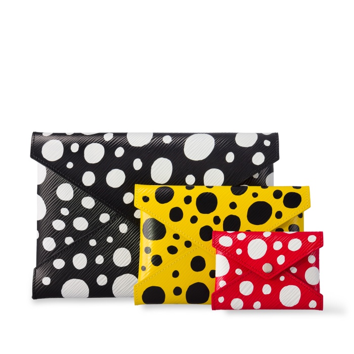 大家最熟悉的草間彌生INFINITY DOTS無限圓點是她最具執念的圖案,也佔據了這次聯名系列中的大多設計上,在草間彌生自傳《無限的網》中提到:「我有一個心願,希望能從自身的位置透過圓點預測、度量無際宇宙的無限。」以黑白、紅白、黃黑、黑紅等色彩組合灑落在皮件、鞋履和時裝上,完美結合無限圓點和品牌經典作品的多樣性,也取代了皮件上的Monogram圖案。