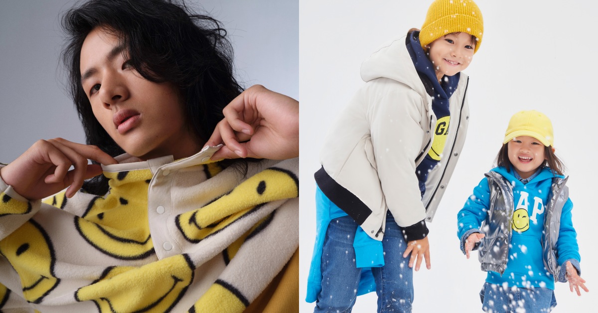 除此之外,Gap本季也攜手Smiley推出限定聯名商品,翻玩Smiley經典的「笑臉」圖案搭配Gap Logo,讓大人小孩持續保持微笑,為派對帶來滿滿的正能量!今年是Smiley 50週年,限定聯名系列推出多種品項,包含長袖T、帽T、大學T、外套、棉褲等,尺寸從成人到兒童款式皆具備,目前已於Gap全台門市及官網開賣,邀請全家人一起傳遞歡樂氛圍和休閒隨性!