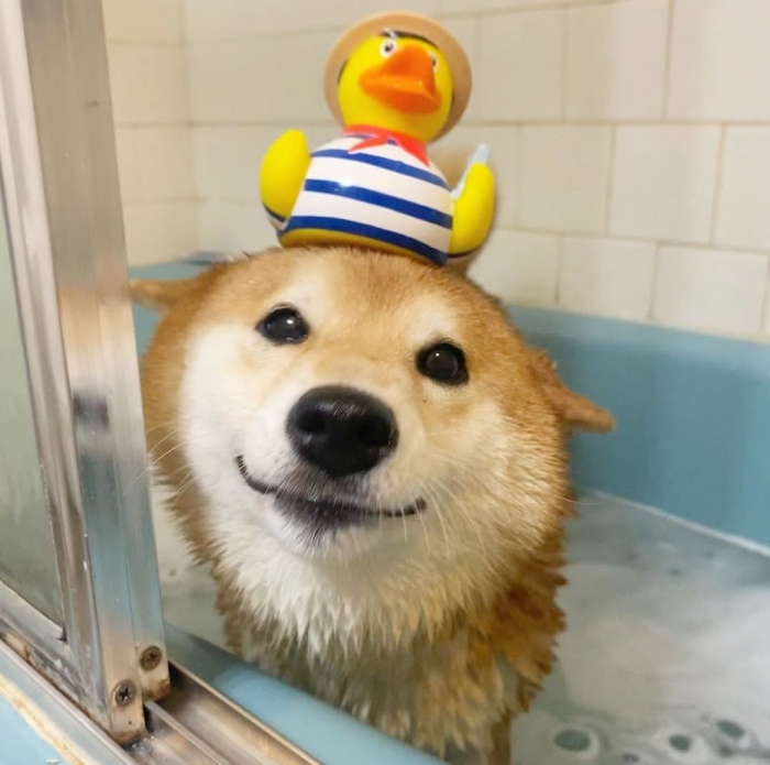 這是 Okane。她正在鴨友的幫助下洗澡,就像料理鼠王一樣。(獲得13分/10分)謝謝你的服務,鴨鴨!