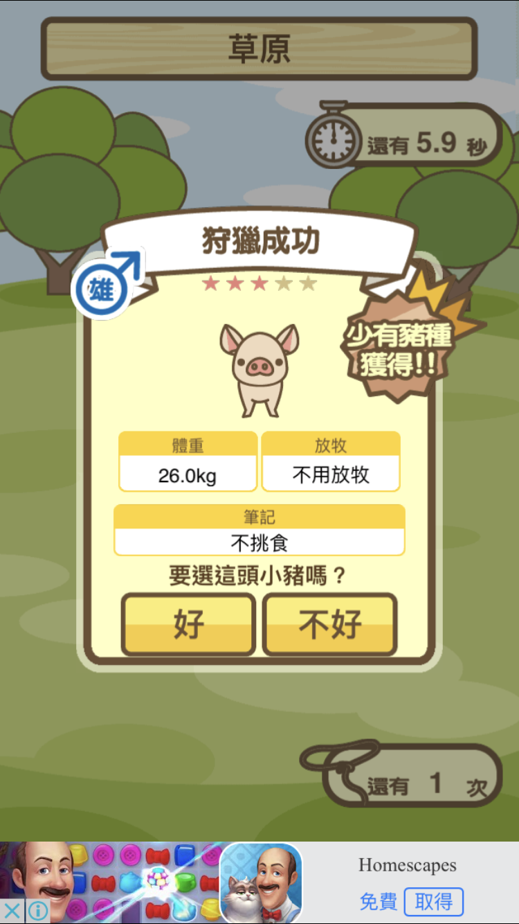 除了購買小豬之外,也可以利用「豬仔狩獵」的方式來獲得豬豬!狩獵場在養殖中心的選項裡面,要有「狩獵門票」才可以參加這個活動。