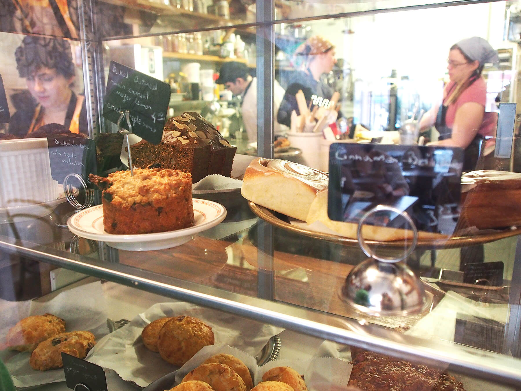 會吸引我一來再來的原因,就是為了櫥窗內的那個杏仁可頌。如果說這是我吃過紐約最好吃的可頌,你可能會覺得我很虛偽,但事實就是那酥脆又豐盈的口感,咬下去的當口杏仁內餡跟糖霜顆粒一起迸發的交互作用,好像在嘴巴裡開了一場辯論會,最後又完美的妥協了。增一分太多、減一分則太少,十分得宜的高級享受,都要感謝知名甜點師傅Tyler Atwell,把他曾在米其林星級餐廳Boulud Sud/Bar Boulud擔任Executive Pastry Chef的經驗帶到這裡來。可頌之外,店內其他甜點如閃電泡芙、水果塔等,也很值得一試,建議你在下午sold out前光臨,才有較多的選擇機會喔!