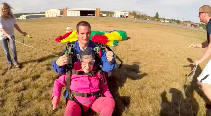 這位來自美國的老太太Eila Campbell,今年10月22日迎接了她的第94個生日。但因為93年來的生日都大同小異,所以今年她決定要過一個不同以往的生日,突破自己、嘗試不同的慶祝方式。