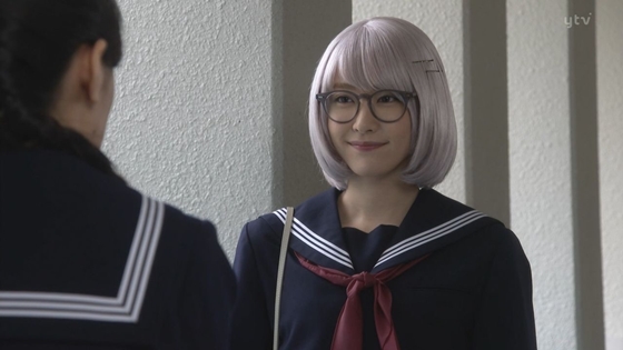 其實在去年的偵探劇《掟上今日子的備案》中,雖然新垣結衣飾演的不是女高中生,但也因為案情需要再度穿上了制服,而且這次穿的是深藍色的制服,配上銀亮的白髮感覺非常不同~