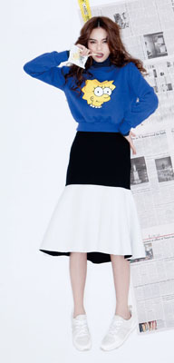 配合可愛的卡通圖案搭配略微誇裝的魚尾裙與白色運動鞋,就完成讓人無法抗拒的俏皮時髦裝扮。