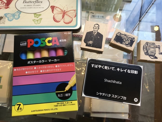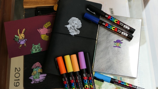 先來示範個簡單的例子,工具就使用POSCA細字七色組(PC-3M 7C)和一個寫吉達黑色印台;