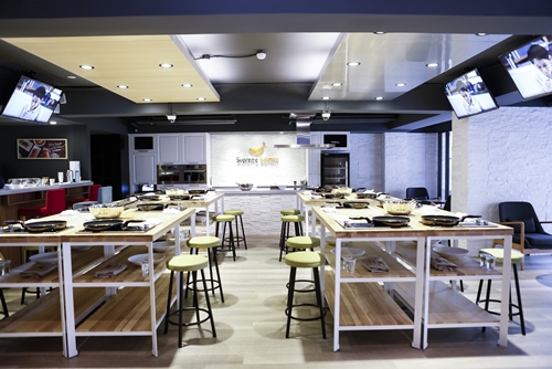 由全球最大鮭魚供應商Marine Harvest美威集團在亞洲首創的鮭魚品牌「Supreme Salmon美威鮭魚」,於2015年成立全台第一個以鮭魚為主題的廚藝教室-「美威鮭魚廚房」,在這舒適清爽的創作空間,提供多樣豐富的鮭魚料理課程,透過一人一套的頂級廚具設備,及多台液晶螢幕同步呈現主廚示範過程,讓學員從如何挑選好食材、基礎處理到各式料理手法及小秘訣都能清楚掌握,輕鬆滿足為自己或親友料理的成就感!