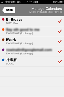 另外我想很多人都有疑問的是,Calvetica既然支援Google calendar, Mobile Me, Exchange等行事曆,要去哪邊導入呢?只要進入手機的設定功能,找到「電子郵件/聯絡資訊/行事曆」的項目,點選「新增帳號」便可選擇需要的服務 導入。輸入帳號、密碼後會進行驗證,接著詢問要同步哪些功能到手機上,此時開啟行事曆就ok啦!