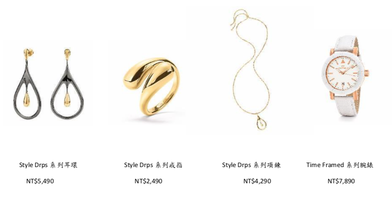 Folli Follie Style Drops 系列輕珠寶,造型簡約優雅,流暢的線條彷彿捕捉了水滴 凝結的瞬間,包含項鍊、耳環、手鐲、戒指等,皆環繞著精緻的金色水滴而設計,不僅具絕佳搭配性,成為每日職場打扮的最佳搭襯,為土象星座們帶來幸運。另外,Time Framed 系列腕錶,從錶殼到錶帶都經過巧妙構思,也推薦給土象星座們,別緻的運動休閒風,外觀簡潔流暢,綴以金色時計,展現好品味。