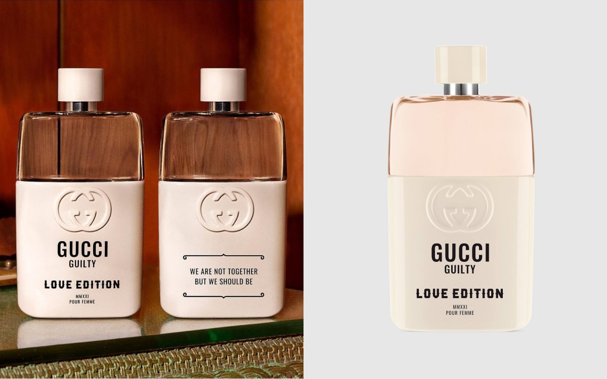 去年曾推出罪愛密戀情侶對香大受好評,今年西洋情人節再次推出 GUCCI 罪愛無畏情侶對香慶祝自由獨特和不落俗套的愛情。瓶身一半點綴不透明的烤漆色調、一半則以光滑的磨砂紋理,透出香水本身的象牙粉和灰紫色調,使這組情人對香煥然一新。每個瓶子的背面彼此呼應,相互配對:「我們不在一起,但是我們應該在一起」刻在女香瓶身,而「我們應該在一起,但是我們不在一起」則刻在男香瓶身。GUCCI 罪愛無畏限量情侶對香已於1月在全台 Gucci 專賣店限量發售