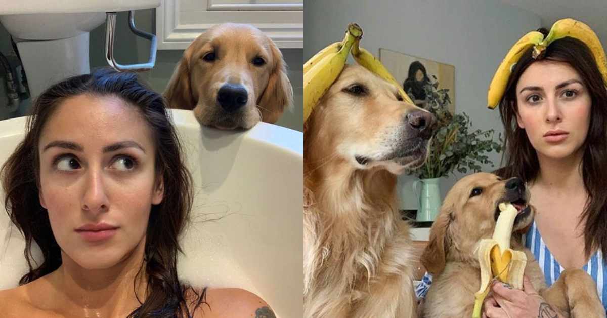 Ursula在IG裏,不時分享與狗狗的合照。她最喜歡拍攝的題材,就是模仿狗狗,作出相同的動作。這次金毛犬給她熱情的舌吻,然後Ursula也回應相同動作,沒料到黃金獵犬卻露出這個表情,令她感到哭笑不得。