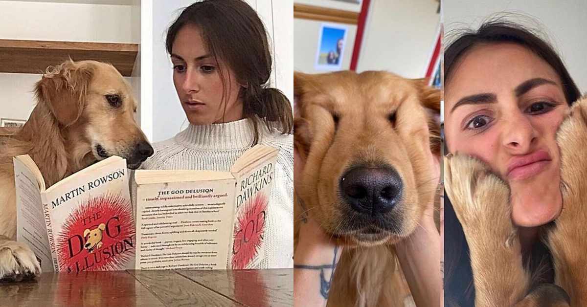 模仿黃金獵犬舌吻示愛?誰知愛犬金毛變臉愣住,下秒表情令媽哭笑不得