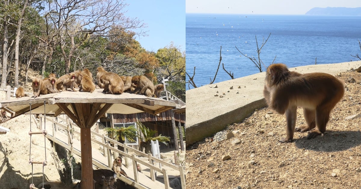 「淡路猴子中心(淡路モンキーセンター)」的特色在於這裡可不是純觀賞的動物園,而是打造一座像猴子的家,三百多隻的小猴子自由穿梭,特別的是通常猴子群居一塊都會有一隻猴老大,而進食時也會由老大先開始,其它小猴子們是不能接近的,但這裡的猴子看起來卻相親相愛,牠們一起享受囊中食物的模樣超療癒!