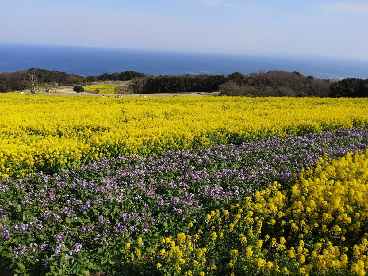 在幸福鬆餅浪漫完還不夠,位於淡路島北部丘陵地的「淡路花棧敷(あわじ花さじき)」,也是遠近馳名的賞花勝地。這座花卉主題公園四季都有鮮花盛開,像是春日油菜花、夏日向日葵,秋日有鮮豔奪目的波斯菊,冬日還有唯美的三色堇,一年來好幾次都還是覺得很新鮮。
