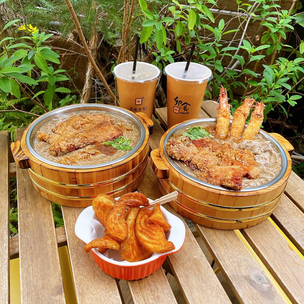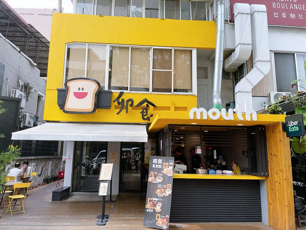 卯食mouth從豐原發跡,第二家分店位於西區美村路一段,店面以溫暖的黃色為主色,搭上招牌笑臉吐司。除了燒肉蛋吐司與麥堡之外,還有放入雞腿、炸蝦等澎湃肉食的麵線,因此有「中部版丹丹漢堡」之美名。