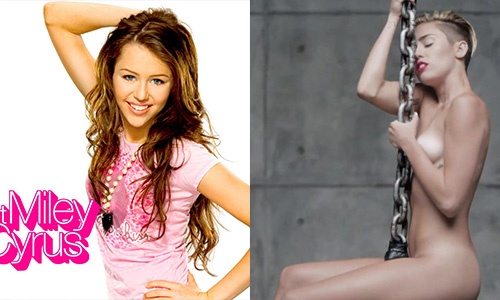麥莉在迪士尼時還有可愛的嬰兒肥,而且曲風也偏陽光青春的感覺。長大後的麥莉不僅頭髮染金色剪短,也更敢裸露自己的身體,差異最大的是當時迪士尼不准講的髒話在這部MV中一次全都講出來啦!