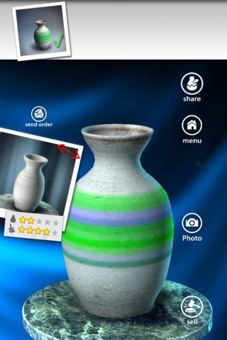 Let’s create! Pottery HD還加入了手勢感應的功能,若你一邊創作,一邊旋轉iPhone的角度,還可以用不同角度來觀賞(連背景連帶變化)或是針對作品作細部的調整唷!