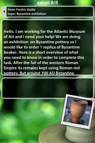Let’s create! Pottery HD屬於一款藝術創作類遊戲,讓人可以體會當初經典浪漫電影「第六感生死戀」與情人一起玩手拉坏的甜蜜感…不過,在遊戲裡,是自己一個人玩啦!每當邀約創作的郵件不斷寄來,或是難得創作出來的作品被高價賣出時,真是有無比的成就感啊!