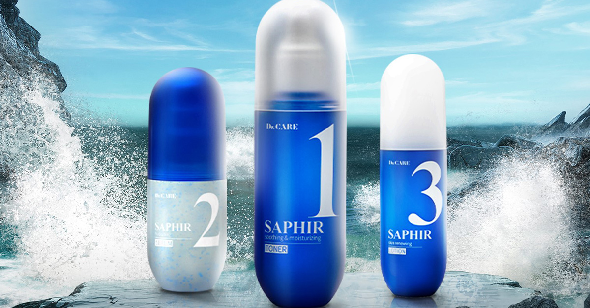 Saphir深海藍寶石系列以亮白水潤為主要功效,主成份採用法國專利萃取的天然淡斑美白精萃『Cywhite 歐囊鏈藻』製成。歐囊鏈藻本身會受到環境影響,在陽光的折射下,會呈現如同彩虹般的多採光澤,故又被稱之為彩虹藻。能有效擊退肌膚黑色素,淡化縮小肌膚斑點,達到無瑕透亮的效果。