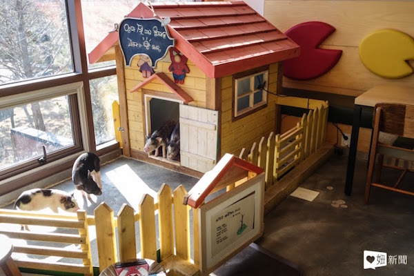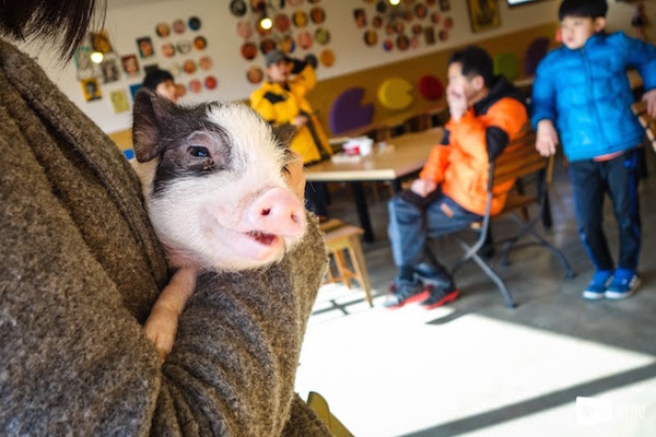 創辦人說著說著,指向咖啡店角落專屬小豬的小窩,裡頭的小豬都才三個月大左右,可以讓遊客親手抱抱牠們,近距離體驗牠們的可愛。