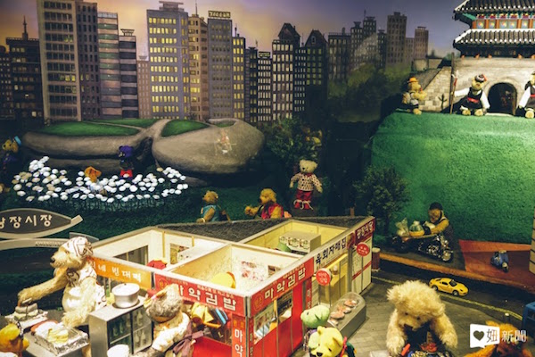 還有一區是迷你的首爾著名景點地圖,從明洞到東大門,喊得出來的地方幾乎都在這裡,當然裡頭的主角都是迷你的泰迪熊,非常可愛。