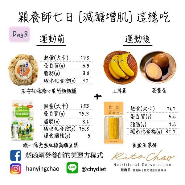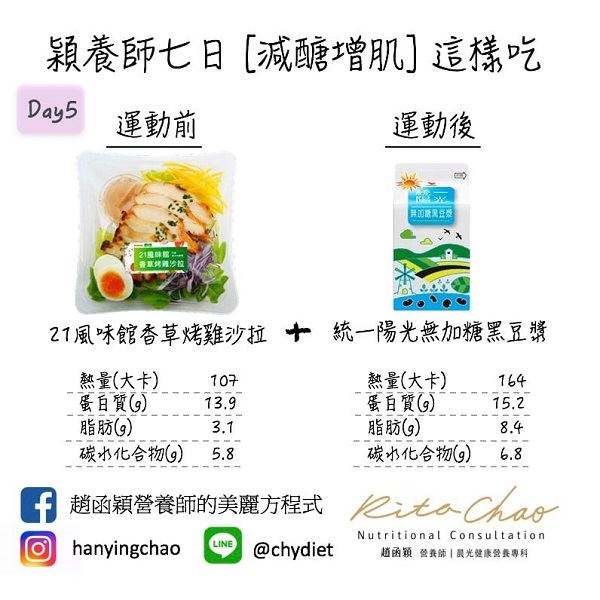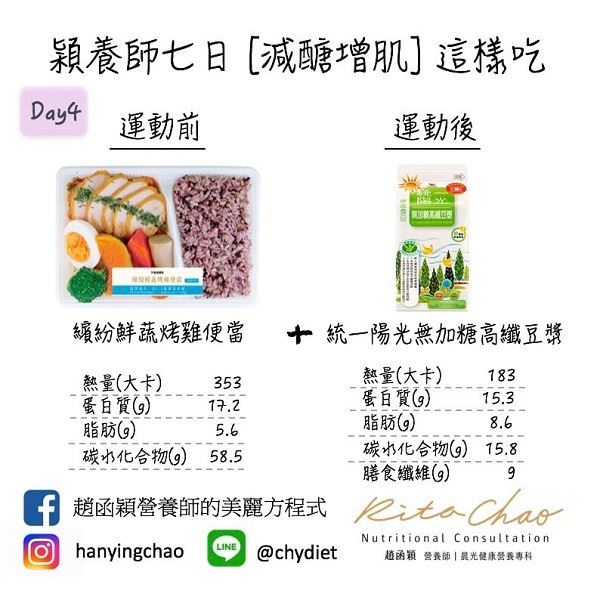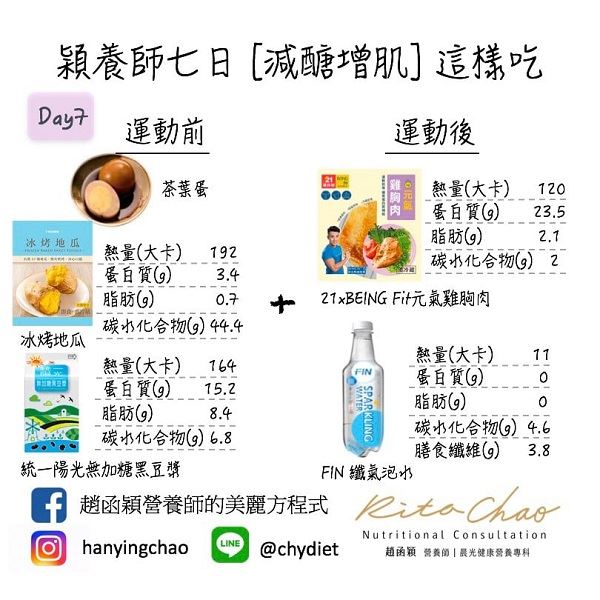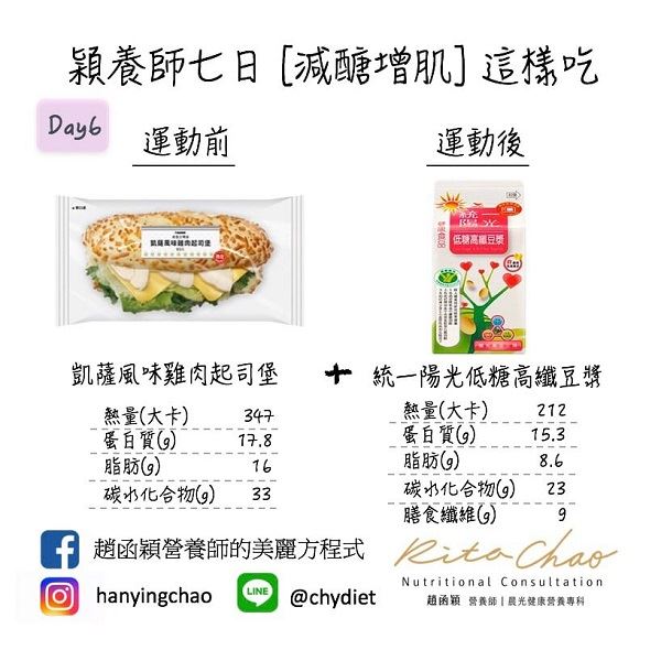至於,運動前、運動後該怎麼吃,才能達到好的成果呢?趙函穎營養師表示,不妨透過便利商店七日增肌減脂菜單,一起健康平安度過這一波疫情。