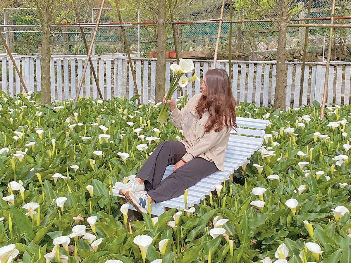 緊接著下午茶的行程,妞編輯推薦可以看海芋、拍美照又可以吃甜點喝咖啡的「名陽匍休閒農莊」,老闆貼心地為愛拍照打卡的花仙子妞妞們打造「三角玻璃小木屋」,再往前走可以坐上花叢圍繞的盪鞦韆,不用什麼技巧可以輕鬆美照get!而名陽匍的手作甜點和咖啡也相當誘人,記得一定要點一份肉桂捲&提拉米蘇喔!(有機會可以喝到海芋拉花咖啡喔)