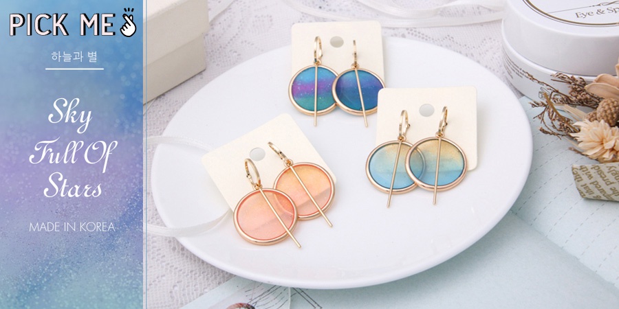 漸層感的大款式耳環讓人立刻聯想到夏天,帶有透明感的星空漸層有種雖然海邊很熱,但踏進海水時又有從腳尖傳進心底的清爽感受。