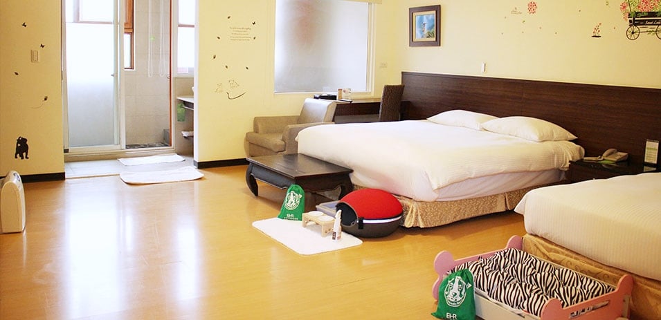 位於桃園楊梅的「麗多森林溫泉酒店」擁有專屬的寵物友善客房,獨棟的歐式建築設有每間15坪大的房間,每間客房內都備有造型寵物床、寵物餐桌、貓砂盆、空氣清淨機與零食,讓主人出門不用攜帶一堆裝備,一卡皮箱即可輕鬆入住。酒店還打造寵物戶外運動區,各種設施根本會讓毛孩賴著不走!